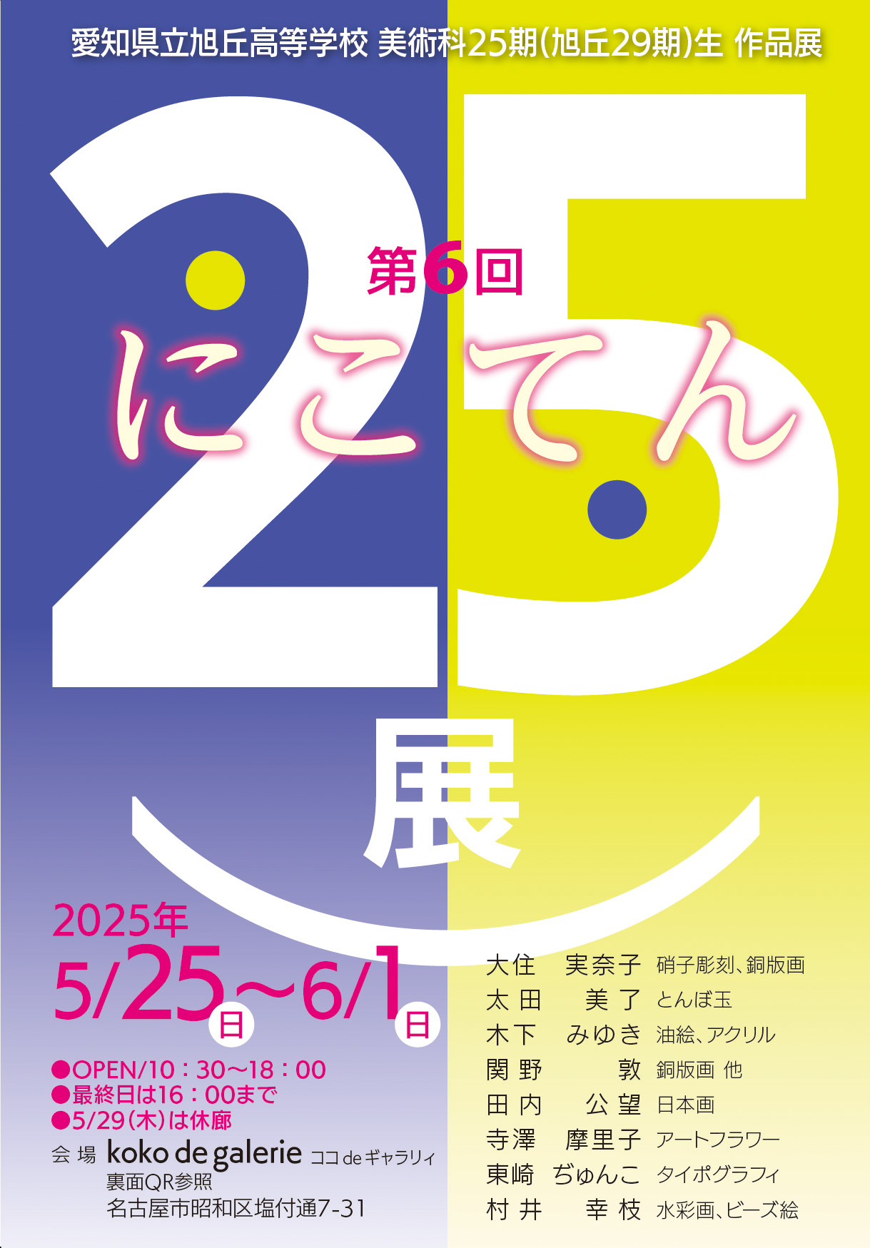 《第5回》にこてん〜愛知県立旭丘高等学校 美術科25期生 作品展〜